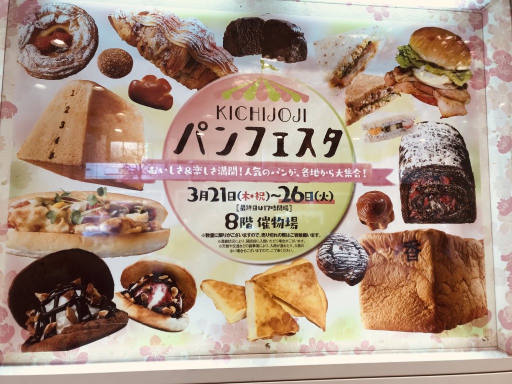 お花見する予定がまだまだ開花していなかったので、吉祥寺の東急百貨店で開催されている「KICHIJOJI パンフェスタ」へ行ってきたよ。